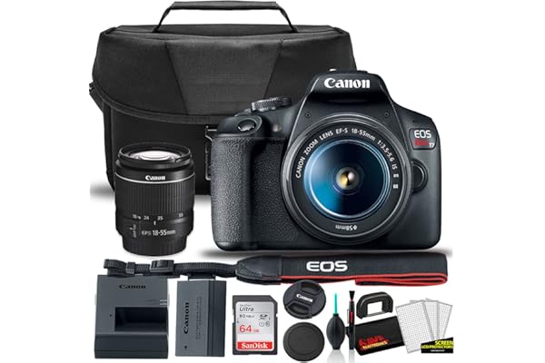 #1:Canon EOS Rebel T7 DSLR Camera with 18-55mm Lens Starter Bundle + Includes: EOS Bag + Sandisk Ultra 64GB Card + Clean and Care Kit + More (Renewed)