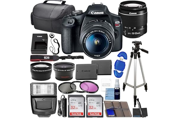 #1:(Renewed) Canon EOS Rebel T7 DSLR Camera Bundle with Canon EF-S 18-55mm f/3.5-5.6 is II Lens + 2X 32GB Memory Cards + Filters + Preferred Accessory Kit, Black